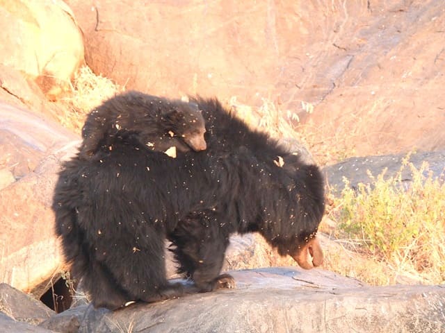 Daroji Wildlife Sanctuary in Hampi is where you arrive for the best sightings of Sloth Bears in India. Sloth Bears are fed honey at a fixed time in evening and photographers sit in an enclosure for the vantage views. The park is also excellent for sighting of Leopards, Indian Eagle Owl and wide ranging other wildlife / birdlife.
